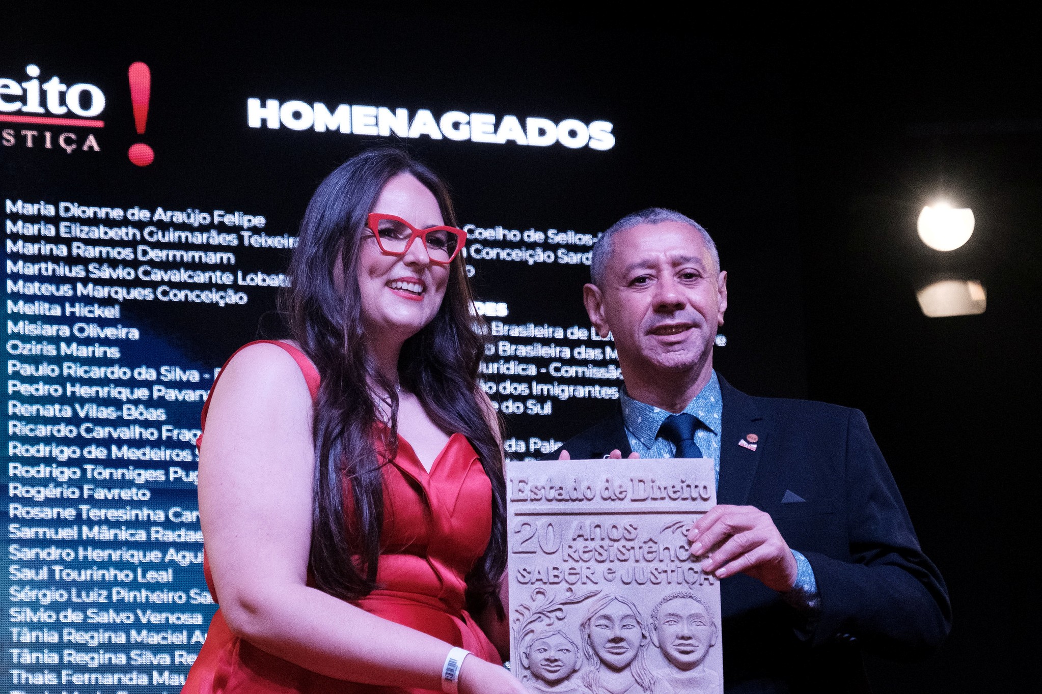 “A Láurea de Agradecimento expressa nossa gratidão pela valiosa atuação e contribuição institucional que, ao longo dessas duas décadas, fortaleceram o compromisso do Jornal Estado de Direito com a promoção do pensamento crítico, da cidadania e da justiça social. Agradecemos por fazerem parte dessa história que une o passado e o futuro na força do saber e da justiça”, afirmou a Diretora do Jornal Estado de Direito, Carmela Grüne.